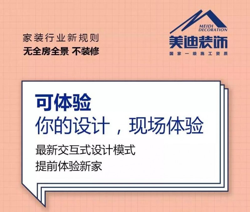 此次家装行业新规则的发布,颠覆了以往传统装修的体验认知,树立了行业发展新标杆。美迪装饰承诺,无全房全景不装修。全面推出湖南全景全房试点体验,面向全省征集900位首席体验官。诚邀湖南900位毛坯房用户率先免费体验全房全景设计效果,到店咨询即可体验全房全景设计方案,还有万元装修大礼包哦。本次试点体验由湖南省装协、权威媒体全程监督。快点击“阅读原文”抢体验名额吧~
